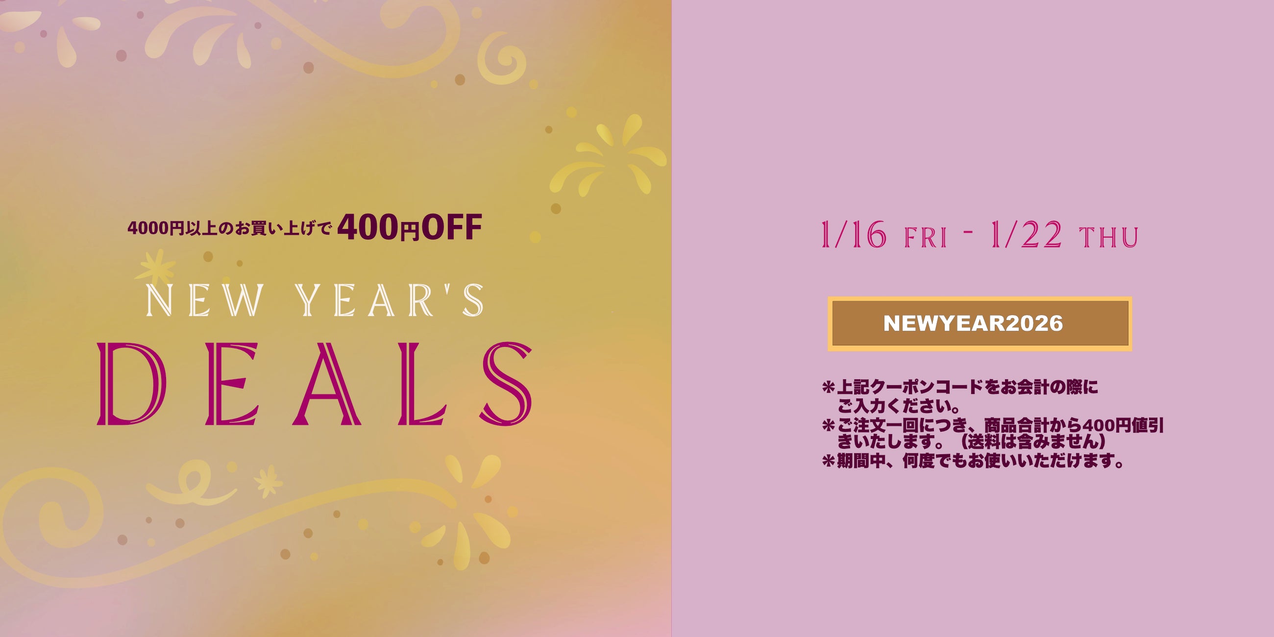 QUICK DISCOUNT! こちらのボタンからクーポンをお使いいただけます。
