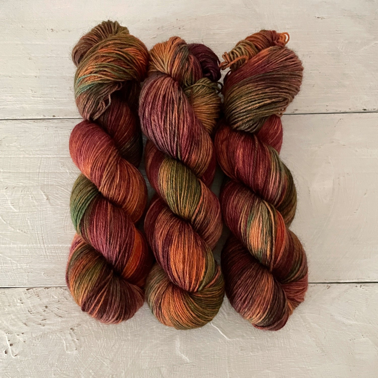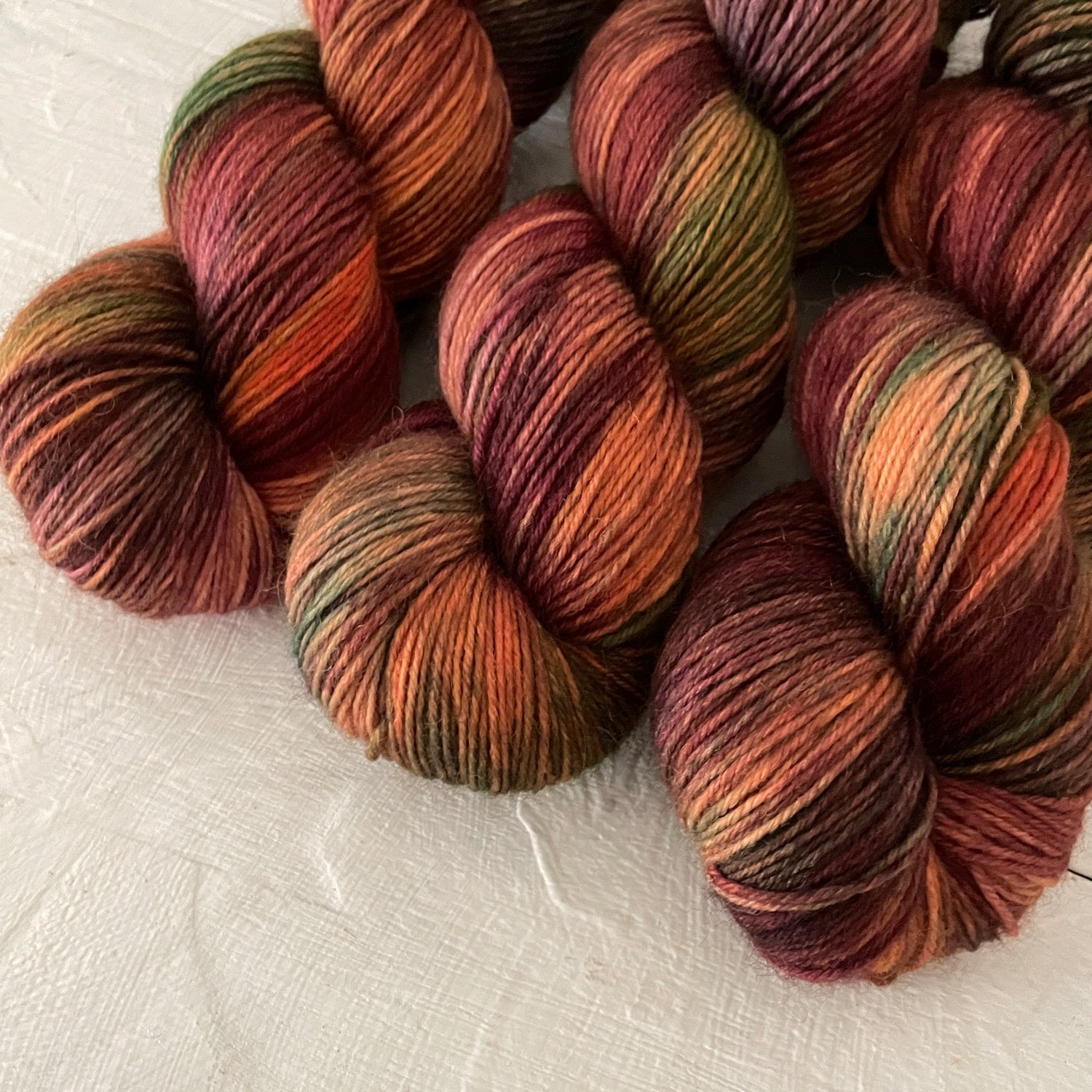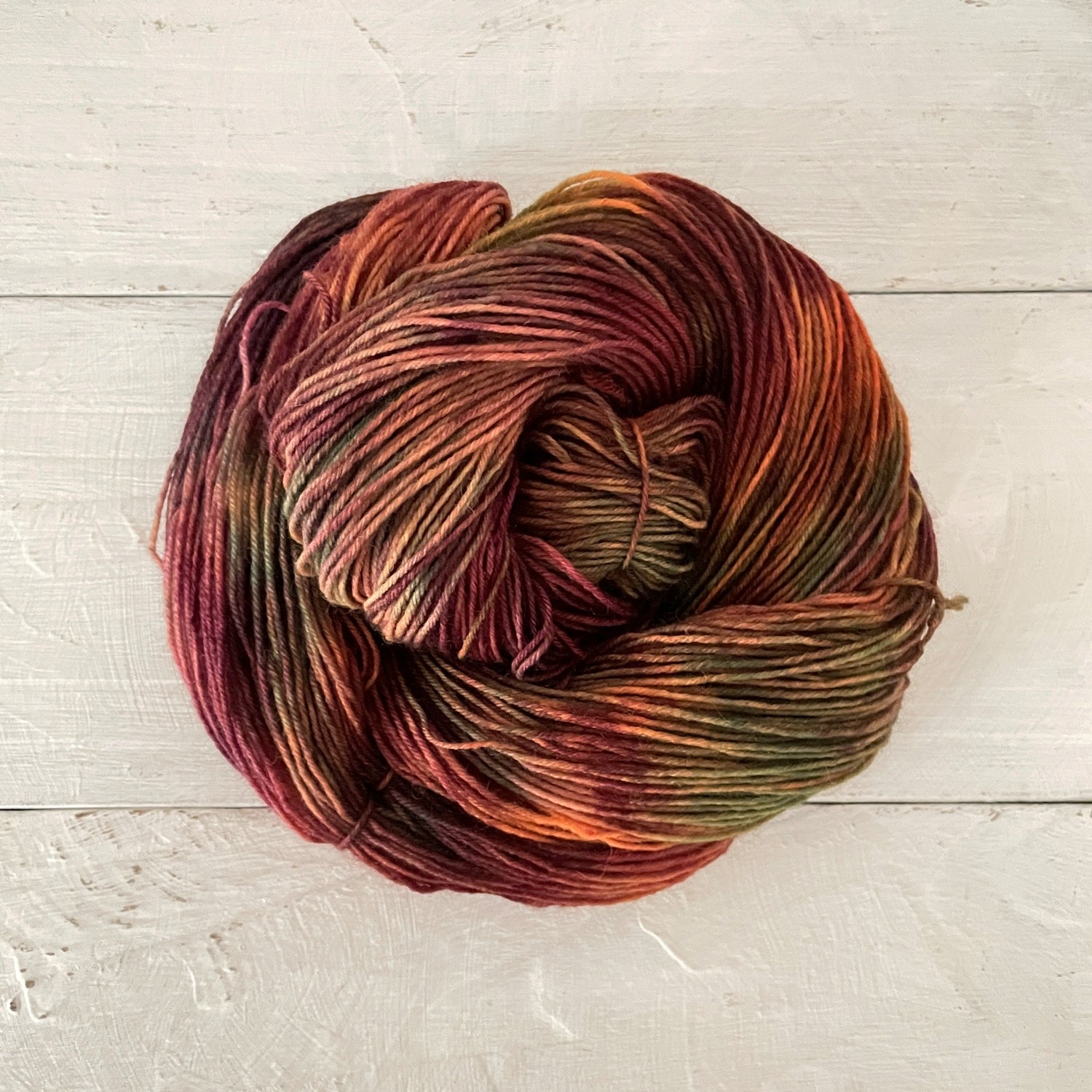 手染めの1点ものになります。BFLレースやポルワスでリリースしてきたカラーのソックヤーン版です。