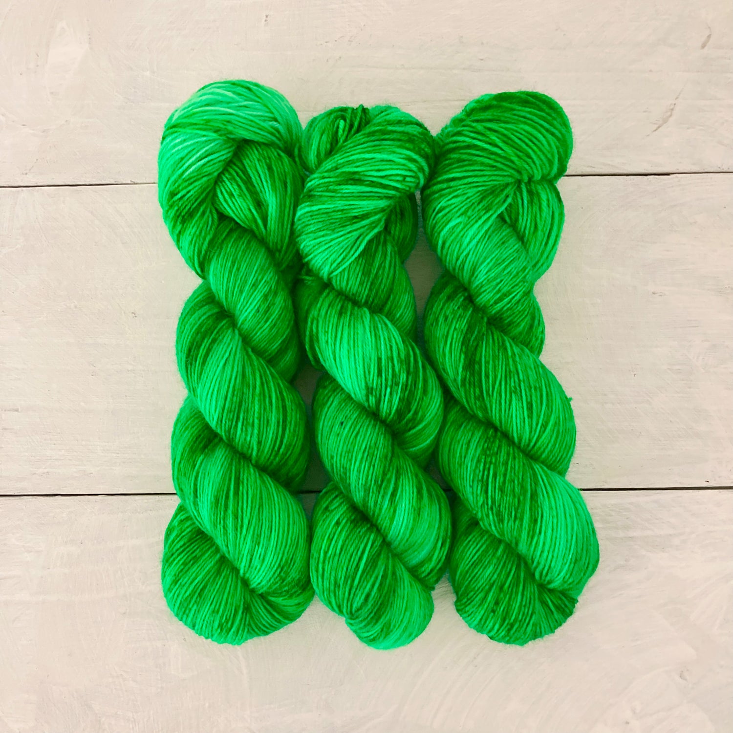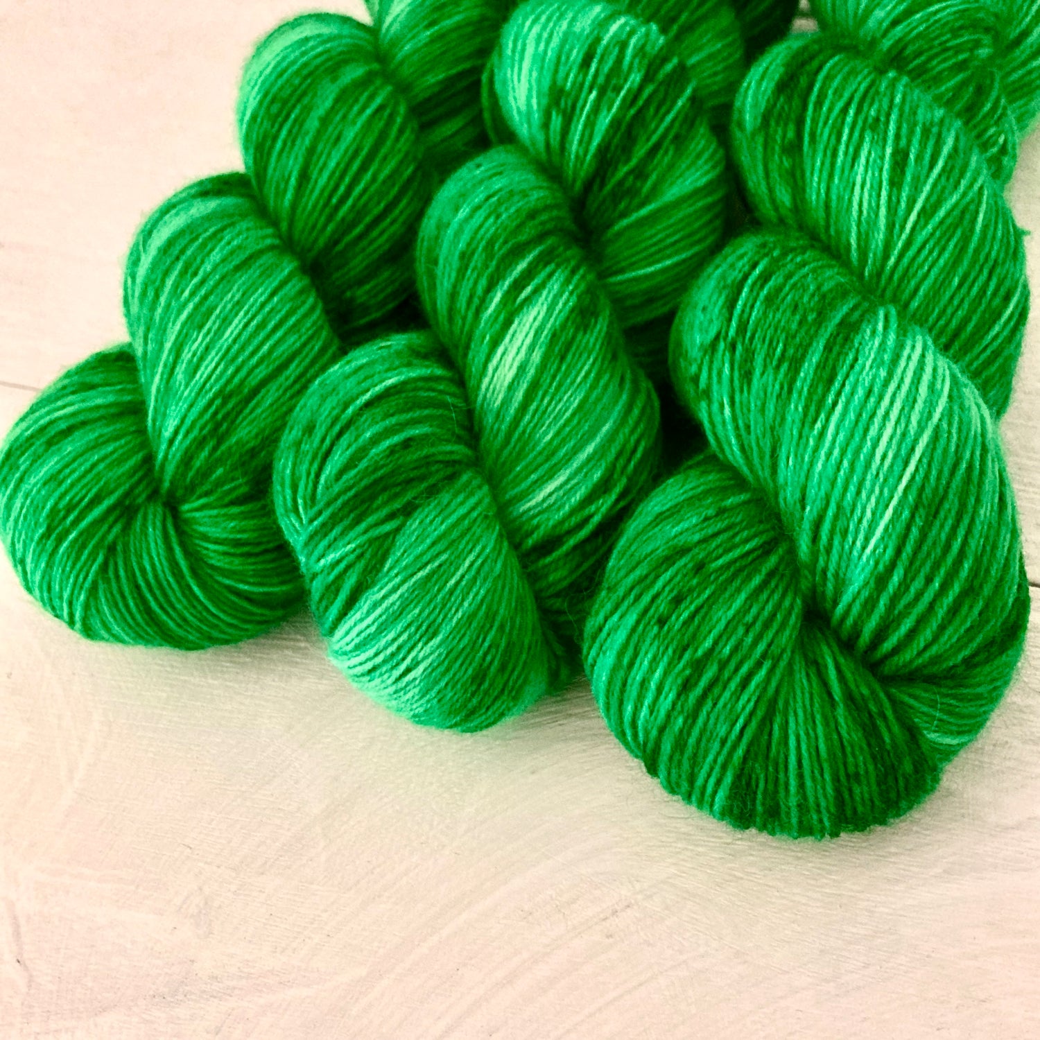 画像よりはっきりとしたグリーンです。濃淡がありますので編み地に深みが出ます。