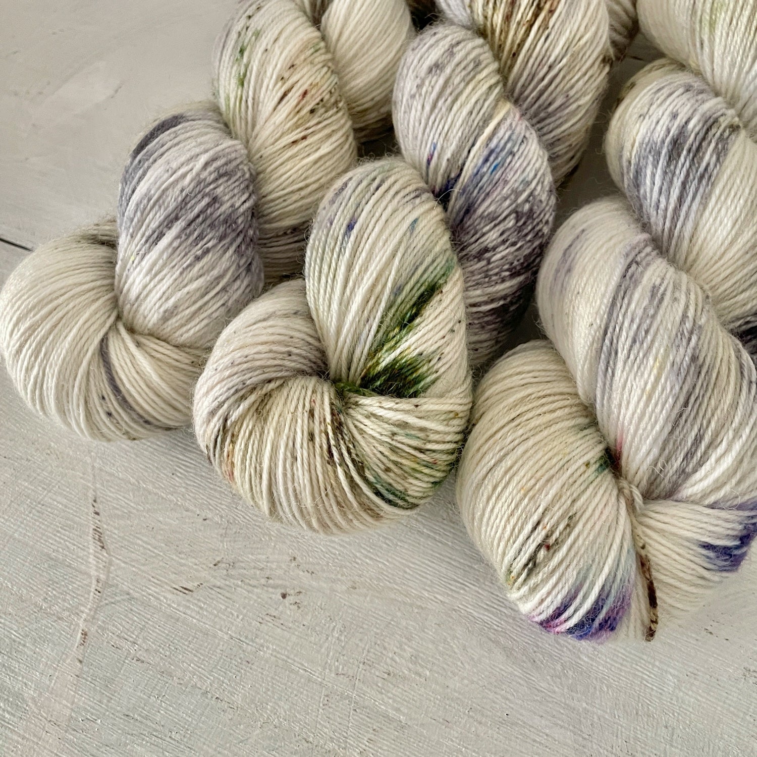 手染めの1点ものになります。BFLでリリースしたカラーのソックヤーン版となります。
