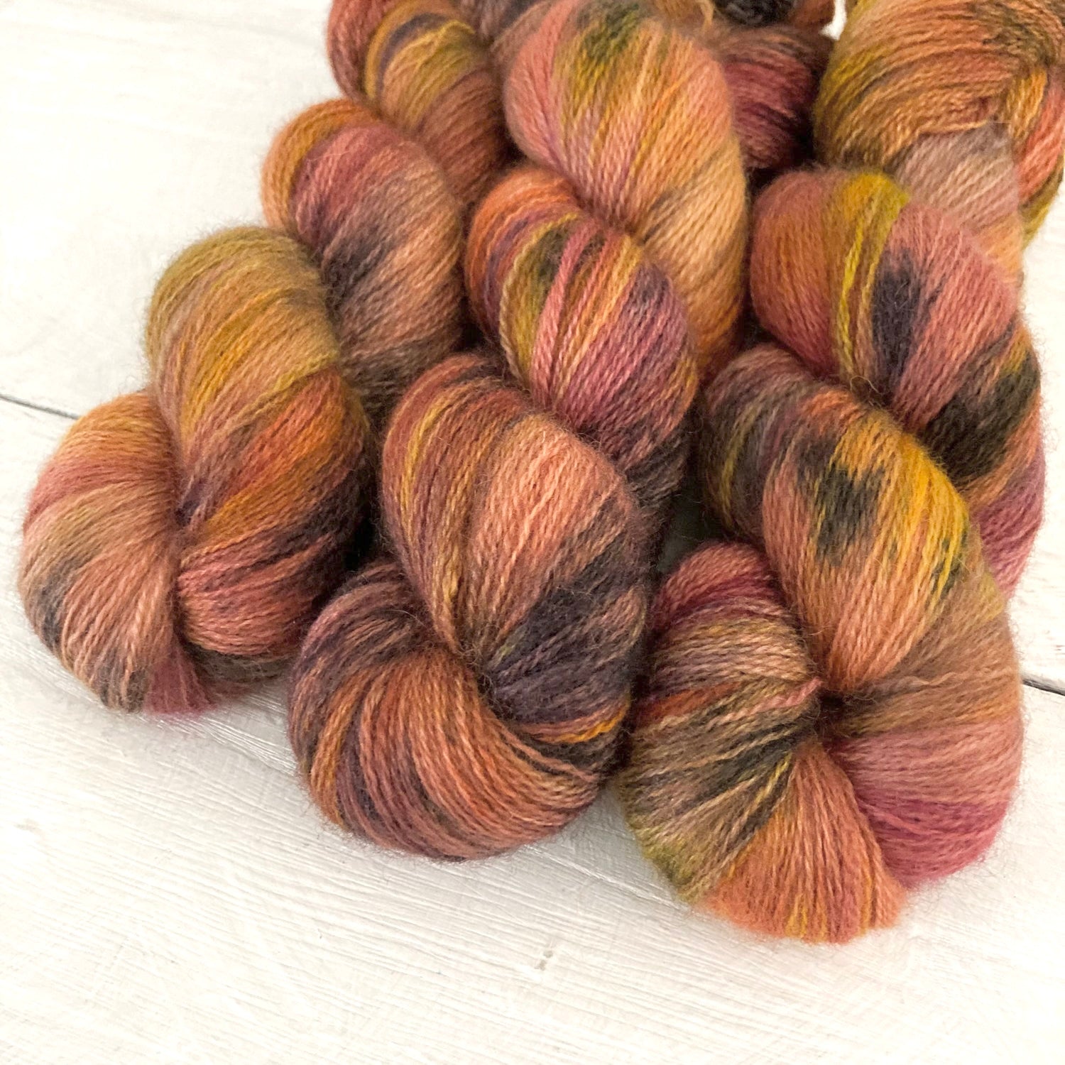 ✳在庫は数点ありますが、それぞれ微妙に異なります。かせの結び方により印象が変わる場合もありますが、手染めならではの個性ですのでご了承ください。