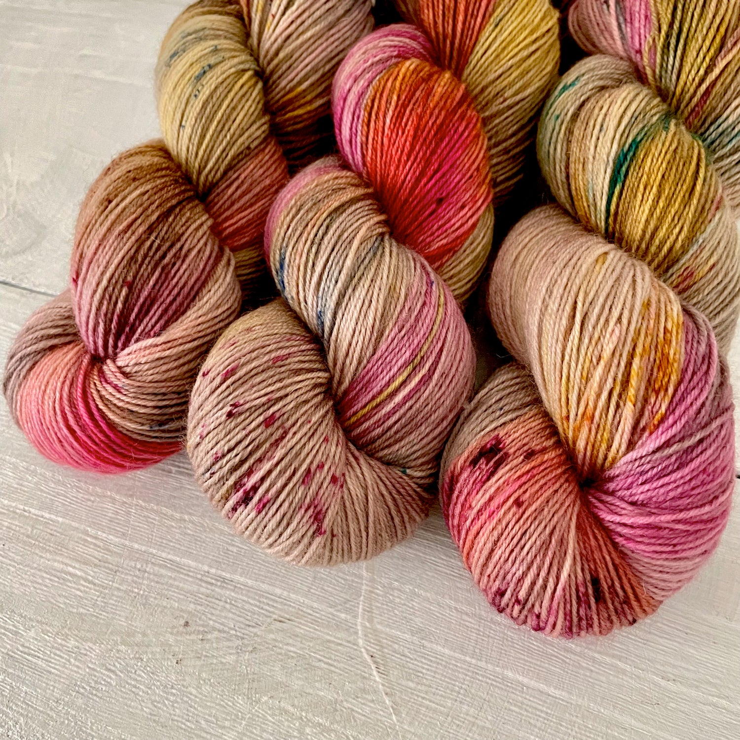 ✳在庫は数点ありますが、それぞれ微妙に異なります。かせの結び方により印象が変わる場合もありますが、手染めならではの個性ですのでご了承ください。
