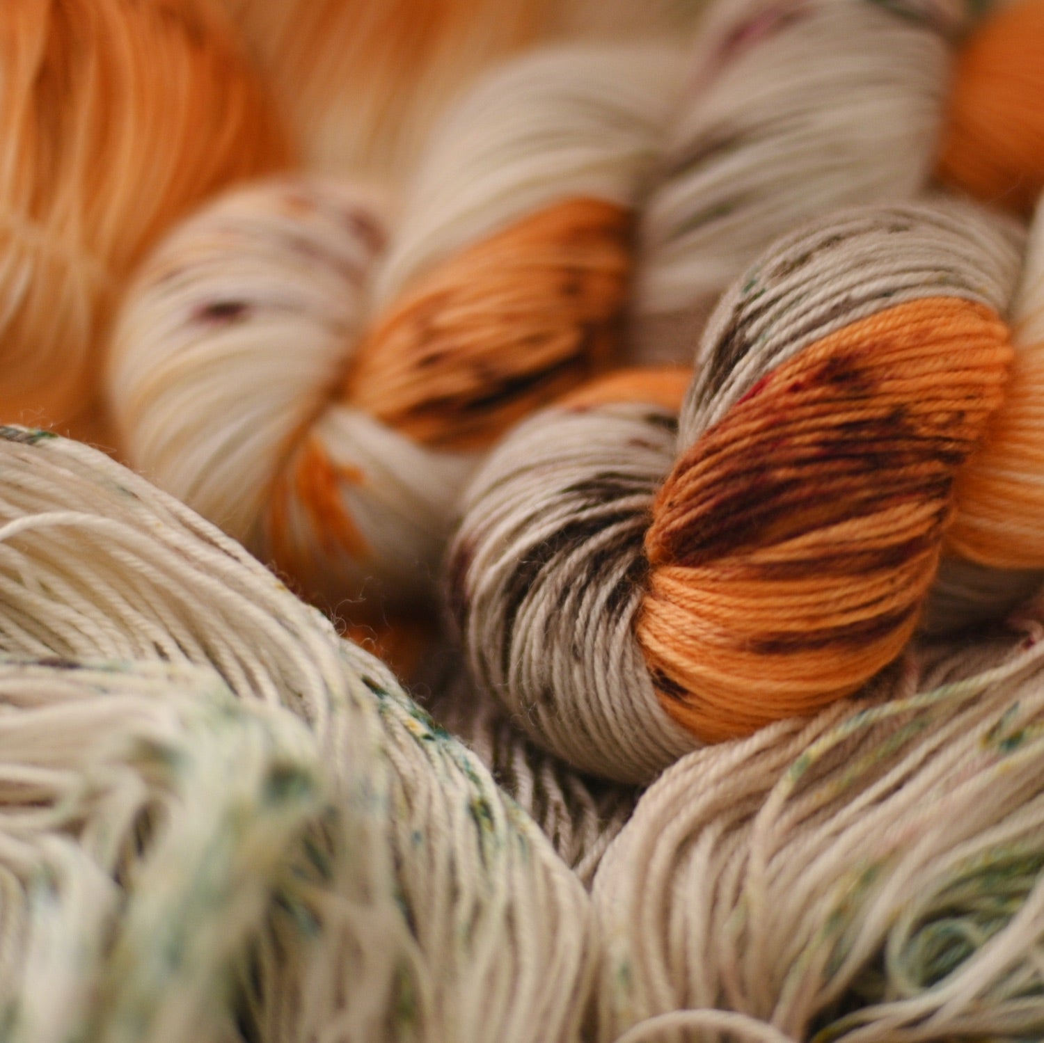✳在庫は数点ありますが、それぞれ微妙に異なります。かせの結び方により印象が変わる場合もありますが、手染めならではの個性ですのでご了承ください。