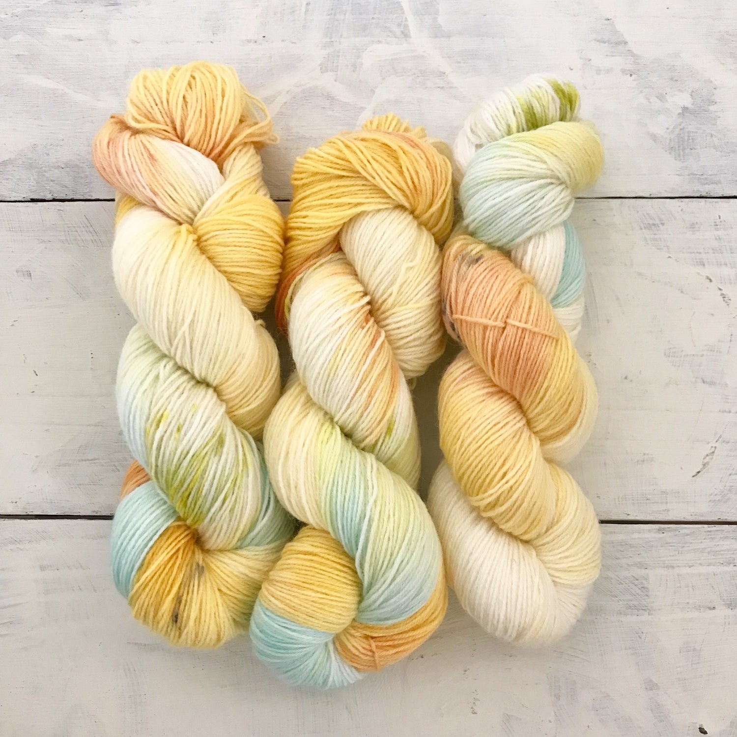 ✳在庫は数点ありますが、それぞれ微妙に異なります。かせの結び方により印象が変わる場合もありますが、手染めならではの個性ですのでご了承ください。