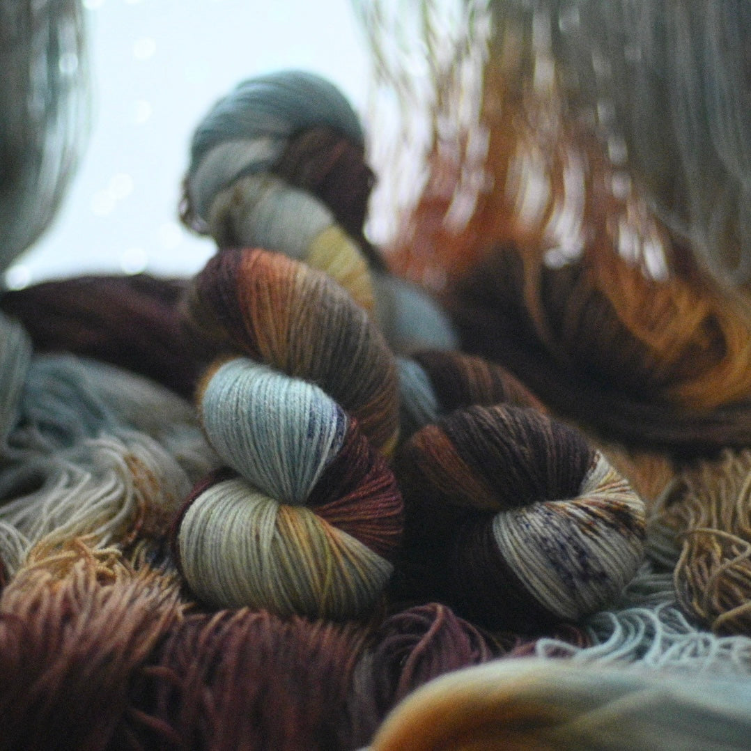 ✳在庫は数点ありますが、それぞれ微妙に異なります。かせの結び方により印象が変わる場合もありますが、手染めならではの個性ですのでご了承ください。