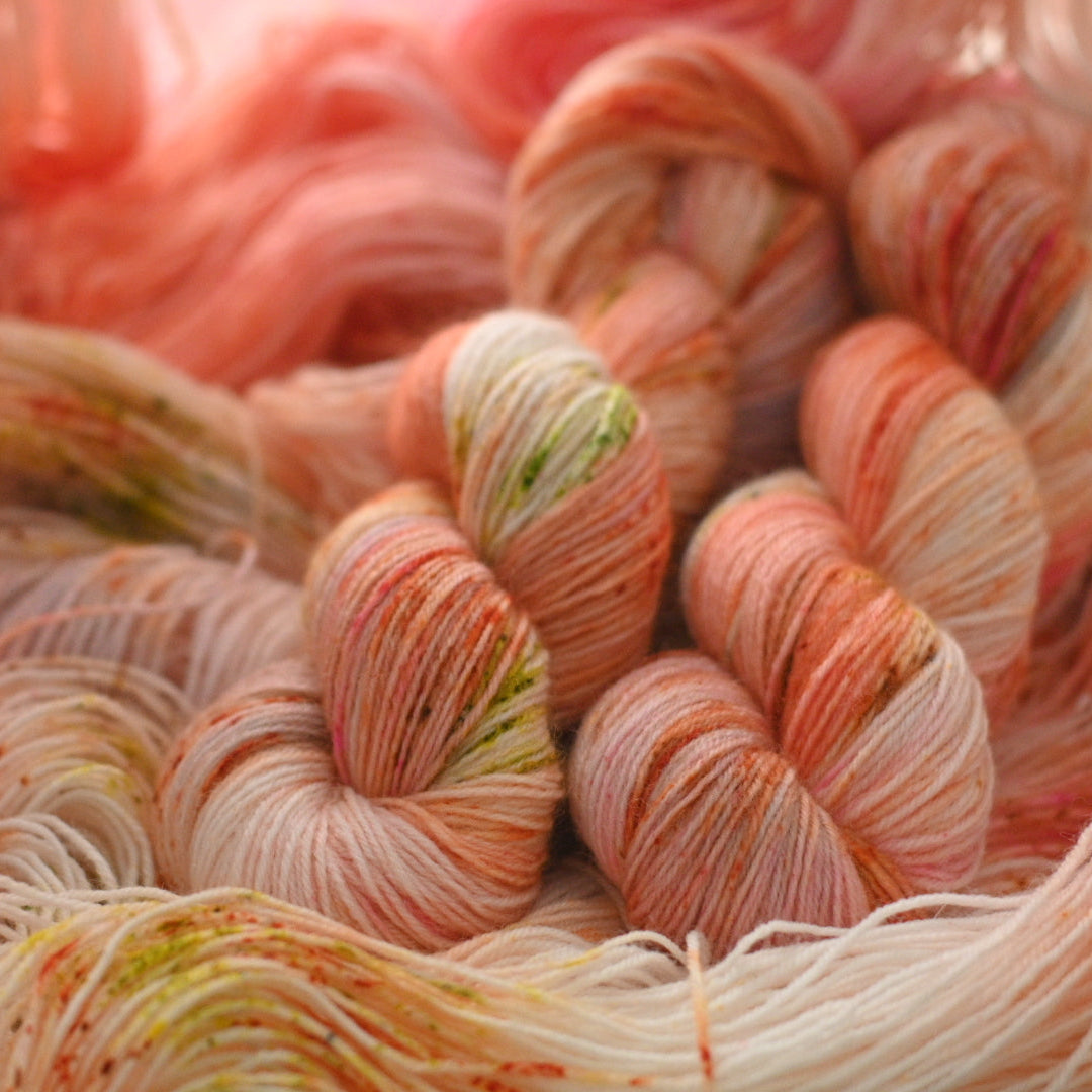 ✳在庫は数点ありますが、それぞれ微妙に異なります。かせの結び方により印象が変わる場合もありますが、手染めならではの個性ですのでご了承ください。