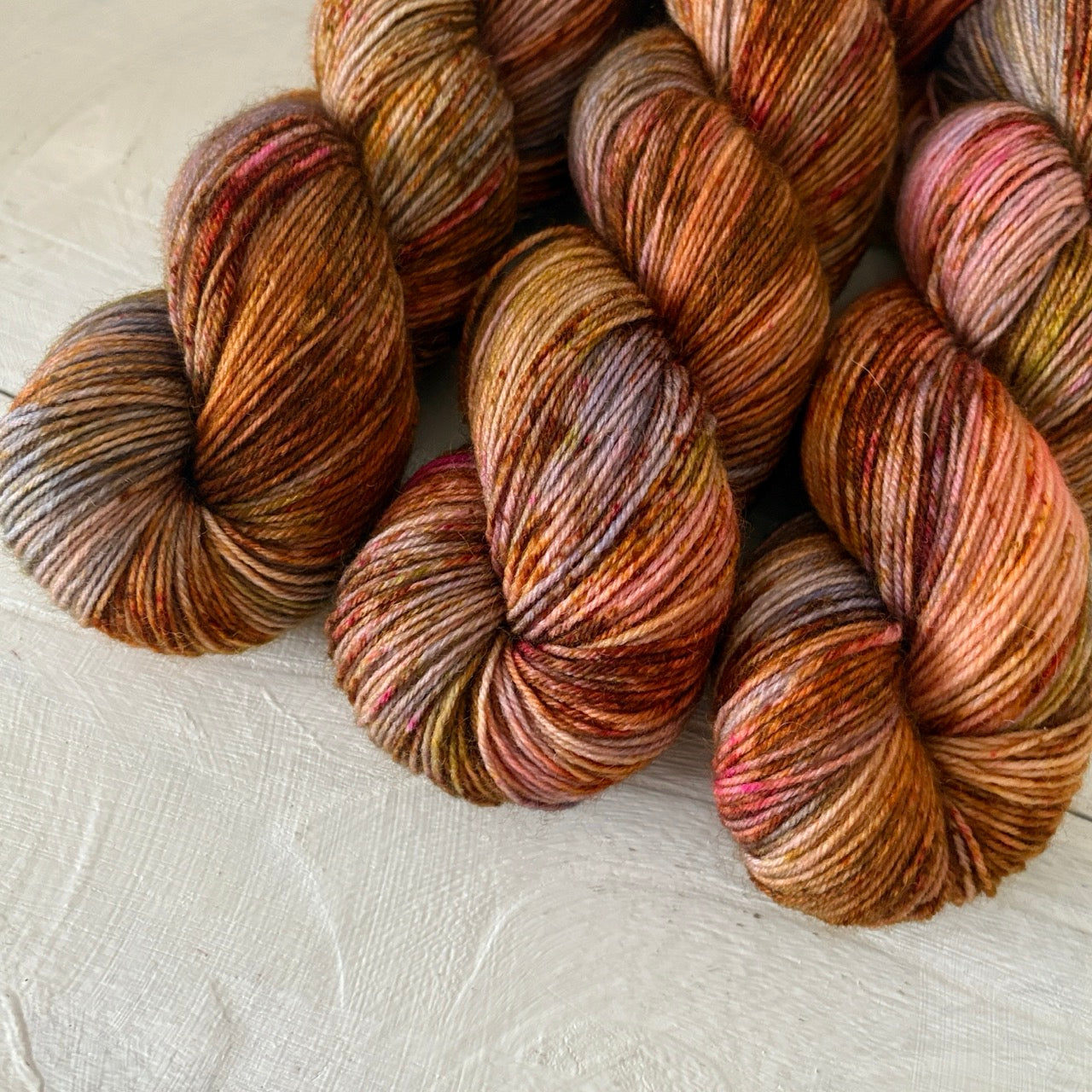 ✳在庫は数点ありますが、それぞれ微妙に異なります。かせの結び方により印象が変わる場合もありますが、手染めならではの個性ですのでご了承ください。