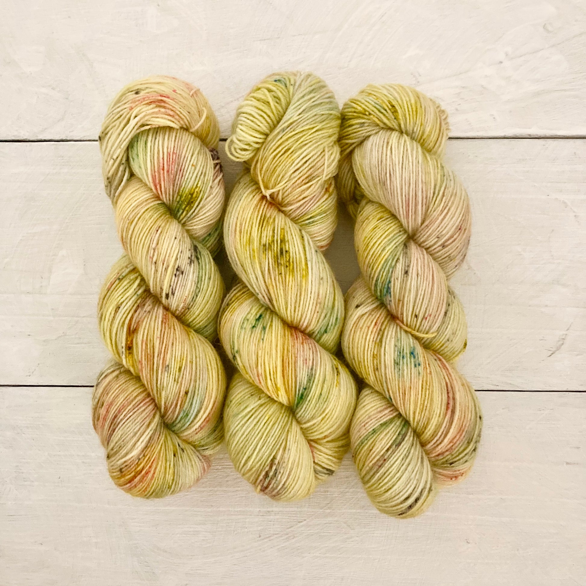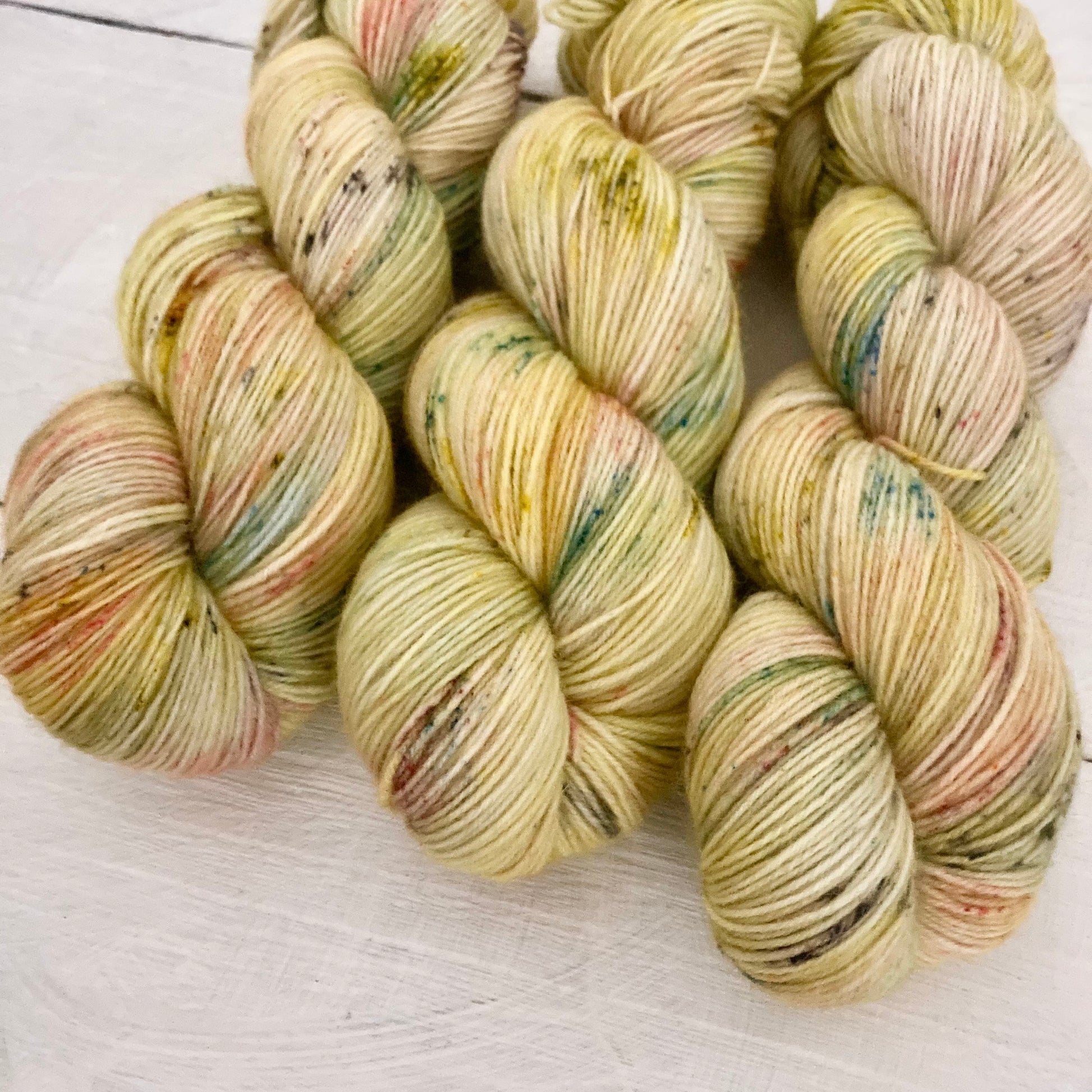 メリノシングルにてリリースしてまいりました作品のソックヤーン版となります(Lotは共通となります)。色味はほとんど違いがなく、シングルよりお手軽にご使用いただけます。