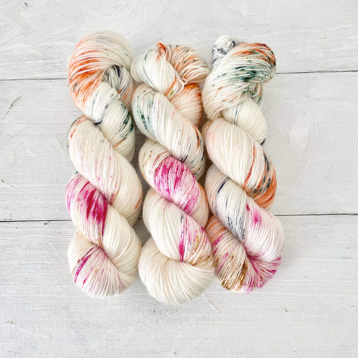 ✳在庫は数点ありますが、それぞれ微妙に異なります。かせの結び方により印象が変わる場合もありますが、手染めならではの個性ですのでご了承ください。