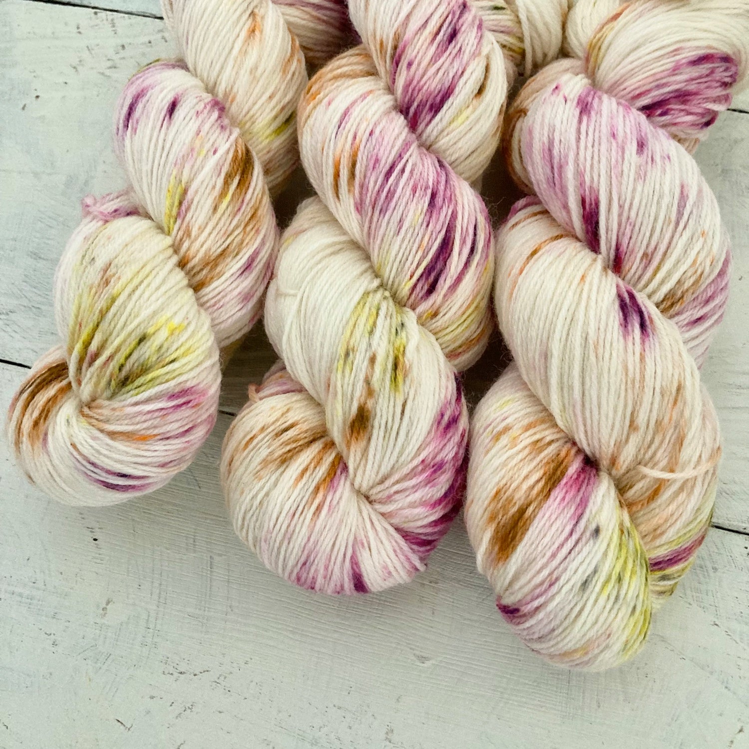 ✳在庫は数点ありますが、それぞれ微妙に異なります。かせの結び方により印象が変わる場合もありますが、手染めならではの個性ですのでご了承ください。
