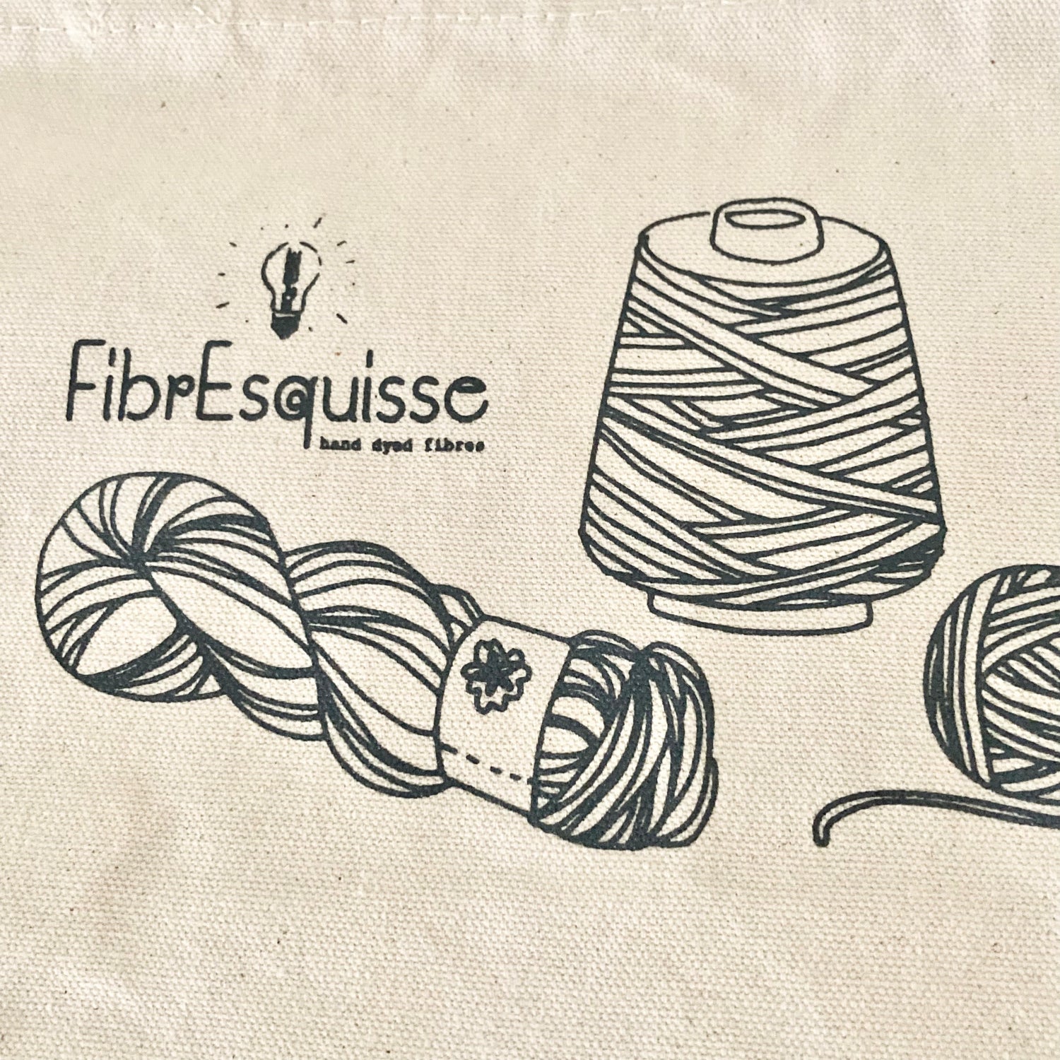 ナチュラルな12oz.のコットンキャンバスにオリジナルのデザインをプリントしたプロジェクトバッグです。