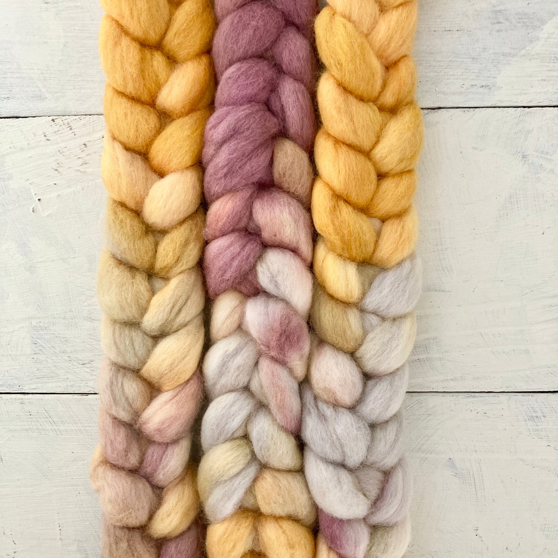 シューマンのピアノ曲「 Träumerei(トロイメライ)」をイメージしたカラーリングです。夢と訳されますが、眠っているときに見る夢というより、空想のような印象を受けます。グラデーションで染めていますが、混ぜたり配置を変えたりと、素材としての羊毛を生かしていただければと思います。
